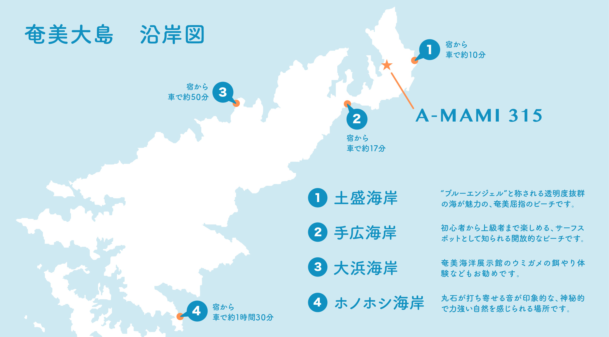 “ブルーエンジェル”と称される透明度抜群の海が魅力の、奄美屈指のビーチ。