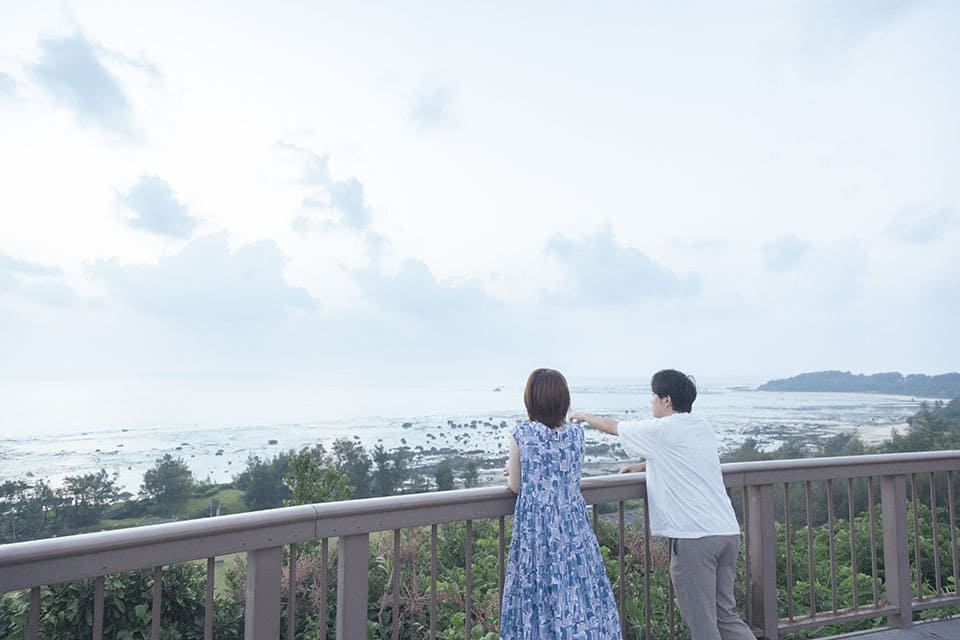 白砂と青のグラデーションが美しく、ずっと眺めていたくなる絶景スポットです。