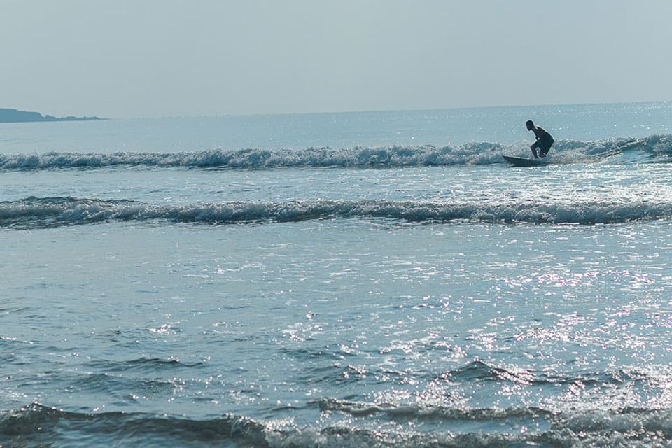 サーフスポットとして知られる開放的なビーチで、打ち寄せる波と広い空が魅力。