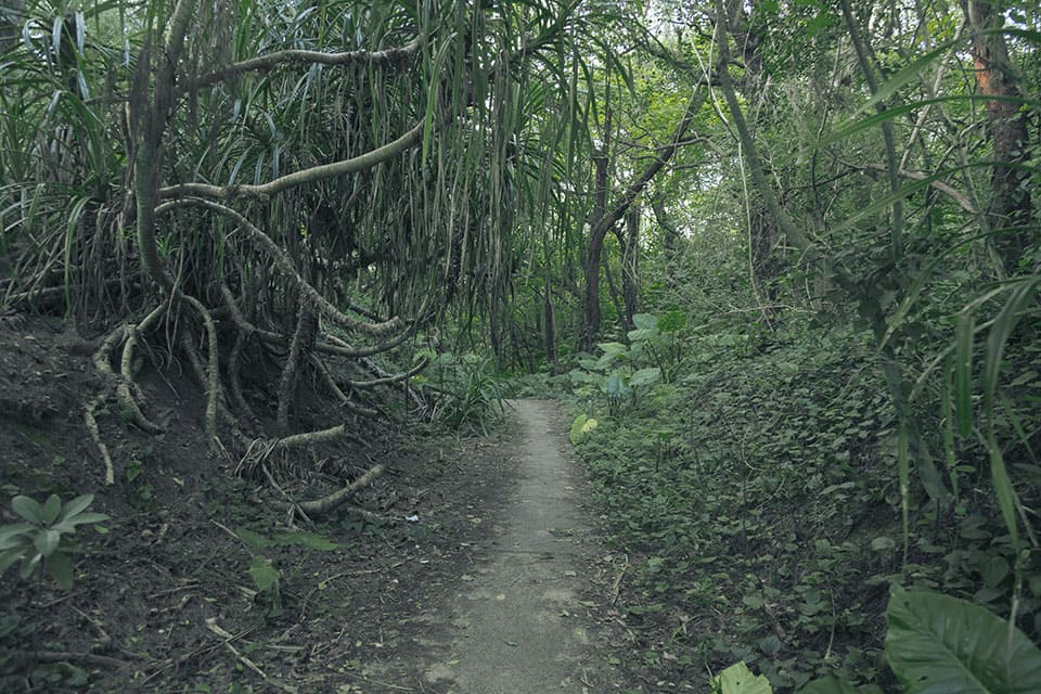 現在ハートロックは見れなくなっていますが、森の小道ではクワズイモやアダンなど奄美の自然を体験することができます。歩く際はハブにご注意ください。